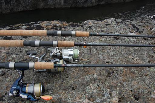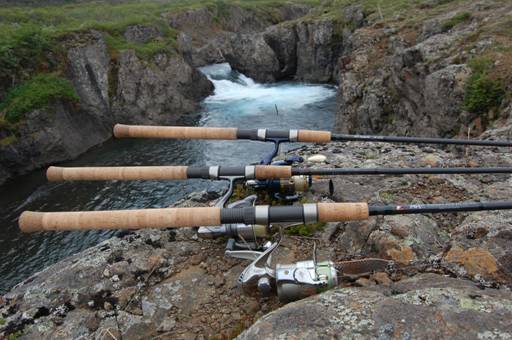 W Islandii mieliśmy okazję łowić następującymi wędkami z pracowni Fishing Center. Były to 2 pstrągówki i dwie łososiówki które można było bardziej nazwać trociówkami, ale średnia waga islandzkiego łososia to 3-5kg, więc do takich ryb były idealne. Nikt się nie spodziewał że weźmie ryba 2 razy cięższa. Ze względu na krystalicznie czyste islandzkie wody do wszystkich wędek użyliśmy żyłek, 0,18 do pstrągowych i 0,25 do łososiowych.