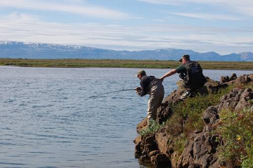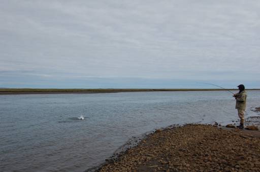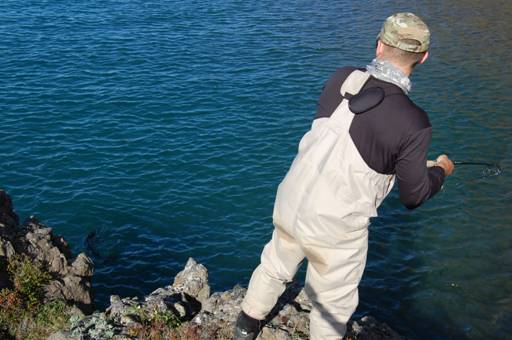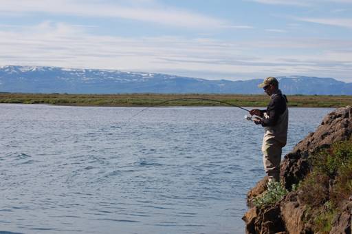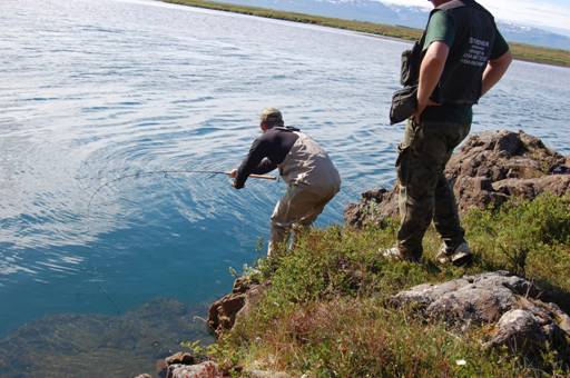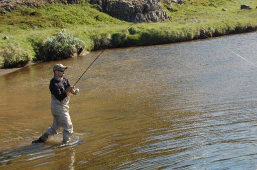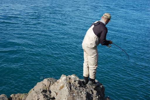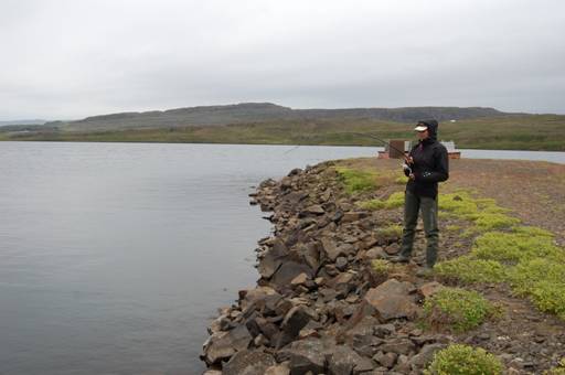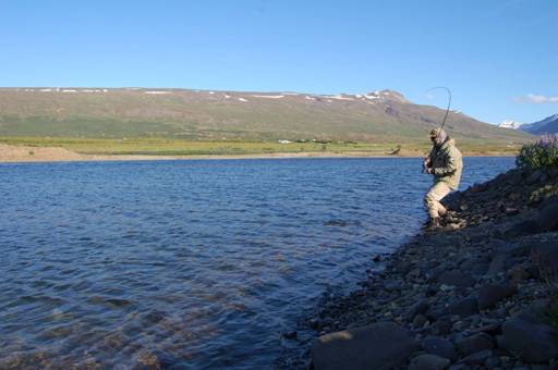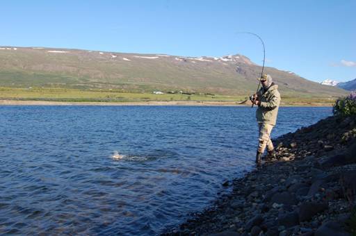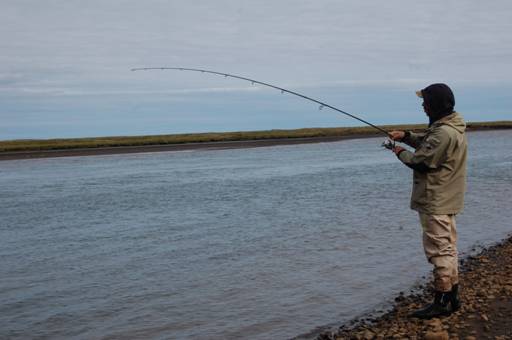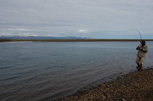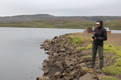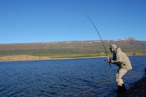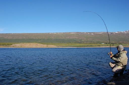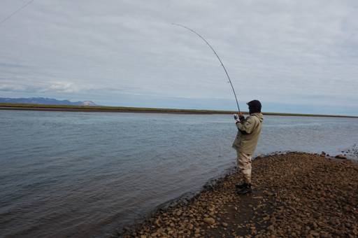 Kij na tym blanku był zrobiony z myślą o łowieniu łososi. Okazał się szczęśliwy i wyjął jednego dnia 3 ryby tego gatunku. Jedną złowiła moja żona Monika, a dwie ja, w tym największą rybę wyprawy, która okazała się również najdłuższym łososiem jaki został złowiony na rzece Selfjot. O tej wędce mogę wypowiadać się w samych superlatywach. Wyrzut przynęty, prowadzenie przynęt i hol był przyjemnością. Do łowienia łososi używałem głównie dużych łososiowych wahadłówek, a więc podstawowej przynęty używanej do połowu tej ryby. Pierwszy łosoś o wadze około 4,5kg został wyjęty dość szybko. Hol trwał około 10 min. W trakcie walki ryba kilka razy odjechała w nurt, zamłynkowała i przewaliła się na powierzchni. Nie robiło to żadnego wrażenia na tej wędce i ryba musiała przegrać tą walkę mimo, że była zapięta na jedno ramię na szczęście mocnej kotwicy. Drugą rybę złowiła Monika i tu też hol przebiegł bardzo sprawnie, mimo że był prowadzony w trudnych warunkach bo z wysokiej skały. Prawdziwy test kij przeszedł na największym łososiu. Starałem się nie forsować holu żeby nie stracić ryby, ale kilka razy musiałem odciągać rybę od skał i zawracać ją gdy chciała odjeżdżać w nurt. Za każdym razem udawało mi się powstrzymywać jej mocne odjazdy i zawracałem rybę z powrotem. Jedynie gdy łosoś krążył pode mną przy skałach mogłem tylko kontrolować żeby żyłka nie weszła w kamienie. Był za duży żeby na siłę odciągać go od skał. Przy tej wielkości łososia przydałby się mocniejszy kij. Jeśli zależy nam na twardej nieustępliwej walce i szybkim zakończeniu holu trzeba by użyć około 100g kija, ale trzeba liczyć się ze spadkiem komfortu łowienia i finezja zmieni się w twardą łososiową orkę. Jadąc do Islandii gdzie w większości są odkryte brzegi, nie ma zaczepów, a łososie mają średnio po kilka kilogramów myślę że to dobry wybór. Przy rozsądnym holu kij pozwali wyjąć rybę dużo większą, więc moim zdaniem nie ma sensu liczyć w Islandii na okazowe łososie i brać ciężki sprzęt, tylko nastawić się na średnie ryby z możliwością złowienia większej. Świetny mięsisty kij dobrze leżący w ręce, który bez uszczerbku zniósł 45min hol dużego łososia. Na tą wędkę padło również kilka mniejszych ryb i co ciekawe w tym przypadku przeważnie udawało się zakończyć hol z pozytywnym skutkiem.