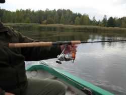Wszystkie wędki będę testował na 3” kopycie Relaxa zaczynając od najlżejszych 7 gramowych główek. Na pierwszy ogień idzie REVS68ML w długości 2,02m, cw. 3-10g do linek w zakresie 6-12lb. Pogoda jest praktycznie bezwietrzna co pozwala mi na idealną obserwację pracy wędziska. Kotwiczę łódź na głębokości 9 metrów tuż pod kantem. Takie ustawienie pozwoli na prowadzenie przynęty z wody płytkiej 3,5m na głęboką oraz obłowienie kantu wzdłuż z obu stron łodzi i dołka. Zakładam 7 gramową główkę z gumą. Wędka na przynętę reaguje minimalnie, przy lekkim wietrze łowienie nie byłoby możliwe. Zakładam kolejno 15, 20 a nawet 25 gramów. Wędka dobrze znosi takie obciążenia, dzięki bardzo dużej szybkości i sprężystości można nieźle zaprezentować przynętę. To dziwne, przecież cw. podane przez producenta to 3-10g. Nie jestem zadowolony z tej wędki stosując gumy. Uważam że będzie dobrze współpracowaćprzy małych i średnich woblerach oraz obrotówkach. Moim zdaniem jest to wędka przeznaczona na takie właśnie przynęty, dobra pod pstrągi i średniej wielkości szczupaki.