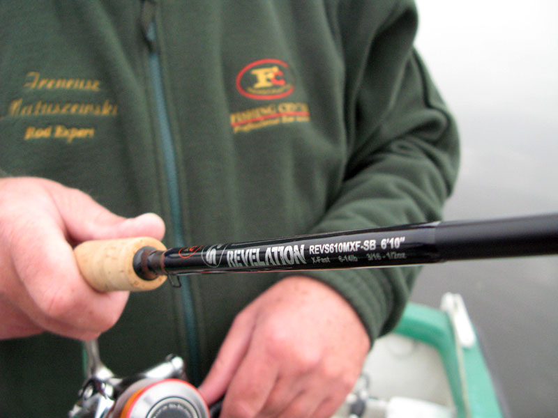 Na pierwszy rzut oka widać, że pomimo fabrycznie podanych, praktycznie identycznych parametrów jak 68MXF, 610MXF jest zdecydowanie bardziej subtelną wędką jak jej krótszy brat. Dlaczego tak jest? Odpowiedź daje spojrzenie do katalogu w rubrykę „zastosowanie”. REVS68MXF to typowy blank do budowy wędki na bassy, natomiast REVS610MXF to klasyczny blank przeznaczony do budowy wędki pod metodę Drop Shot. To wszystko wyjaśnia. Tak przy okazji zamawiając wędkę w pracowni warto wcześniej doczytać do końca w katalogu wszystkie parametry blanku i jego przeznaczenie. Pozwoli to na uniknięcie pomyłek. Już pierwsze rzuty przynętą 7g z 3” kopytem upewnia mnie o tym, że wędka będzie znakomita. Przy zastosowaniu główki 10g łowi się już doskonale. Pierwsze branie niewielkiego sandaczyka i kapitalne czucie delikatnego brania! Czułość wędki przy stukaniu w dno i braniu jest wręcz nieprawdopodobna, porównywalna z wędkami na blankach z IV czy nawet V generacji grafitu. Myślę, że jest to spowodowane zastosowaniem nowatorskich technologii przy produkcji. Kończę sprawdzanie górnych możliwości tej wędki na 25 gramach. I przy tej wadze wędka pracuje rewelacyjnie. W czasie paru godzin złowiłem klika niestety niewymiarowych sandaczy, ale tylko jedno branie nie było zacięte. Tak więc skuteczność wędki jest prawie 100 procentowa. REVS610MXF to kapitalna propozycja jako jeden na łodzi uniwersalny kij sandaczowy do łowienia gumą w zakresie cw. 10-25 gramów. To druga wędka z tej serii która trafi do mojego prywatnego arsenału. Trzeba dodać, że mała waga blanku i lekkie zbrojenie dało razem z kołowrotkiem wielkości 2500 wyważenie idealne.