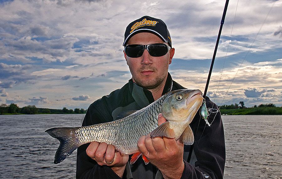 Tak właśnie wygląda łowienie przeze mnie jazi i kleni na odrzańskich rewirach. Interesują mnie tylko te większe sztuki (45+), szukam ich raczej głębiej tzn. na głębokich napływach główek, przelewach główek, zalanychrafkach oraz przy opaskach. Nie jestem zwolennikiem powierzchniowego łowienia klenio-jazi na woblerki wielkości małego paznokcia. Na moim odcinku Odry, to się po prostu nie sprawdza iprowokuje do brania mniejsze ryby. Ja stosuję przynęty raczej selektywne w 99% woblery w wielkości 3,5 do 5cm (rzadziej 7cm) wszystkie schodzące na głębokość pomiędzy 1-2,5m. Moi faworyci to Bonito, Hornet od Salmo, Dorado Alaska, Rapala i kilka innych, wszystkie raczej tonące w podanej wyżej wielkości. Tonące są cięższe, dalej latają i pozwala to parkować pływadło w większej odległości od główki , co z kolei nie płoszy dużych, ostrożnych ryb.