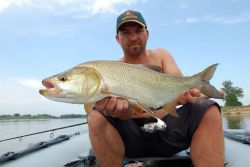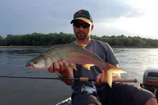 Z tym blankiem wiązałem największe oczekiwania, ponieważ wydawało mi się że będzie to boleniowy ideał. Na pierwszy rzut oka długość i ciężar wyrzutu sprawiają wrażenie że ten blank idealnie będzie nadawał się do wielko rzecznego kuszenia srebrnych torped. Długość skłania raczej do obławiania dalekich miejsc z brzegu. Jeśli ktoś lubi łowić z brzegu mniejszymi przynętami z plecionką kij ten będzie dobrym wyborem. Gorzej ten blank radzi sobie przy łowieniu z łodzi w miejscach nurtowych większymi przynętami o masie około 15-20g i mimo że złowiłem na niego sporego bolenia miałem wrażenie że nie do końca kontroluję sytuację. Przy burcie gdy chciałem przytrzymać mocniej rybę, kij wygiął się aż po sam dolnik i dopiero wtedy mogłem przyciągnąć go do ręki. Jak dla mnie kij jest zbyt delikatny do ciężkiej boleniowej orki, bardziej nadaje się do finezyjnego łowienia mniejszymi przynętami np. gdy trzeba skusić do brania samotną rybę żerującą w odkosie zwaliska. Przez swoją miękkość skłaniałbym się raczej do użycia plecionki np. o wytrzymałości 10lb. Ładowanie się kija przy wyrzucie jest bardzo dobre i przynęta leci na zadowalającą odległość, nawet mimo uzbrojenia kija w małej średnicy przelotki. Muszę przyznać że kij bardzo dobrze trzyma rybę i przypuszczam że jest to efekt jego miękkości. Zacięty boleń nie miał szans żeby spadł w trakcie holu. Blank ten moim zdaniem ma również inne ciekawe przeznaczenie. Myślę że byłaby to ciekawa propozycja dla wędkarzy lubiących łowić duże klenie i jazie z łodzi na przelewach na większe 5-6cm przynęty. To jednak silne ryby i czasami potrzebny jest zapas mocy żeby ryba nie weszła w przelewowe zaczepy lub nie spłynęła na zapływ przelewu.