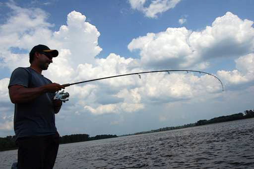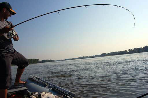 Gdy wziąłem ten kij do ręki od razu poczułem w nim siłę. Mocny dolnik, solidna szczytówka sprawiają, że śmiało można go nazwać boleniową armatą do najcięższych przynęt. Kij dobrze spisuje się do dalekosiężnego łowienia gdy potrzebny jest zapas mocy żeby rzucić ciężką przynętą. Używałem tej wędki kiedy chciałem miotać na dalsze odległości większymi przynętami czyli woblerami długości 8-9cm i cięższymi wahadłami. Śmiało możemy dynamicznie, wręcz siłowo wyrzucać przynęty z tego kija bez obaw o uszkodzenie, przy czym przy wyrzucie blank świetnie się ładuje. Jeśli chcemy dynamicznie wprowadzić przynętę w wodę po rzucie, co czasami sprawdza się żeby sprowokować bolenia, ten kij również spełni swoją rolę. Do wędki użyłbym żyłki 0.22mm, ponieważ w połączeniu z plecionką zestaw może być trochę przesztywniony. Długość raczej predysponuje ten kij do łowienia z brzegu, szczególnie gdy trzeba daleko posłać przynętę lub łowić w dzikich miejscach obfitujących w zwaliska. Mimo że kij jest mocny, dobrze trzyma rybę i nie zanotowałem na nim spadów. W czasie holu gdy dociągamy rybę do burty ugięcie przechodzi w parabolę. W tym blanku tkwi tyle mocy że na odpowiednim zestawie śmiało możemy przytrzymać rybę w miejscu, nawet w najsilniejszym nurcie. Ma to szczególne znaczenia gdy łowimy z łodzi, ponieważ czasami trzeba na siłę zatrzymać rybę żeby np. nie weszła w śrubę silnika lub nie wbiła kotwic w burtę pontonu. Osobiście nie lubię gdy ryba robi co chce i hol w silnym nurcie jest mordęgą, wolę mieć kontrolę nad rybą i właśnie ten kij do tego idealnie się nadaje. Sam blank sprawia wrażenie wytrzymałego na urazy, więc świetnie nadaje się do boleniowej orki. Uwagę zwraca też dość nietypowy ciemno granatowy kolor, który trzeba przyznać wygląda bardzo efektownie.